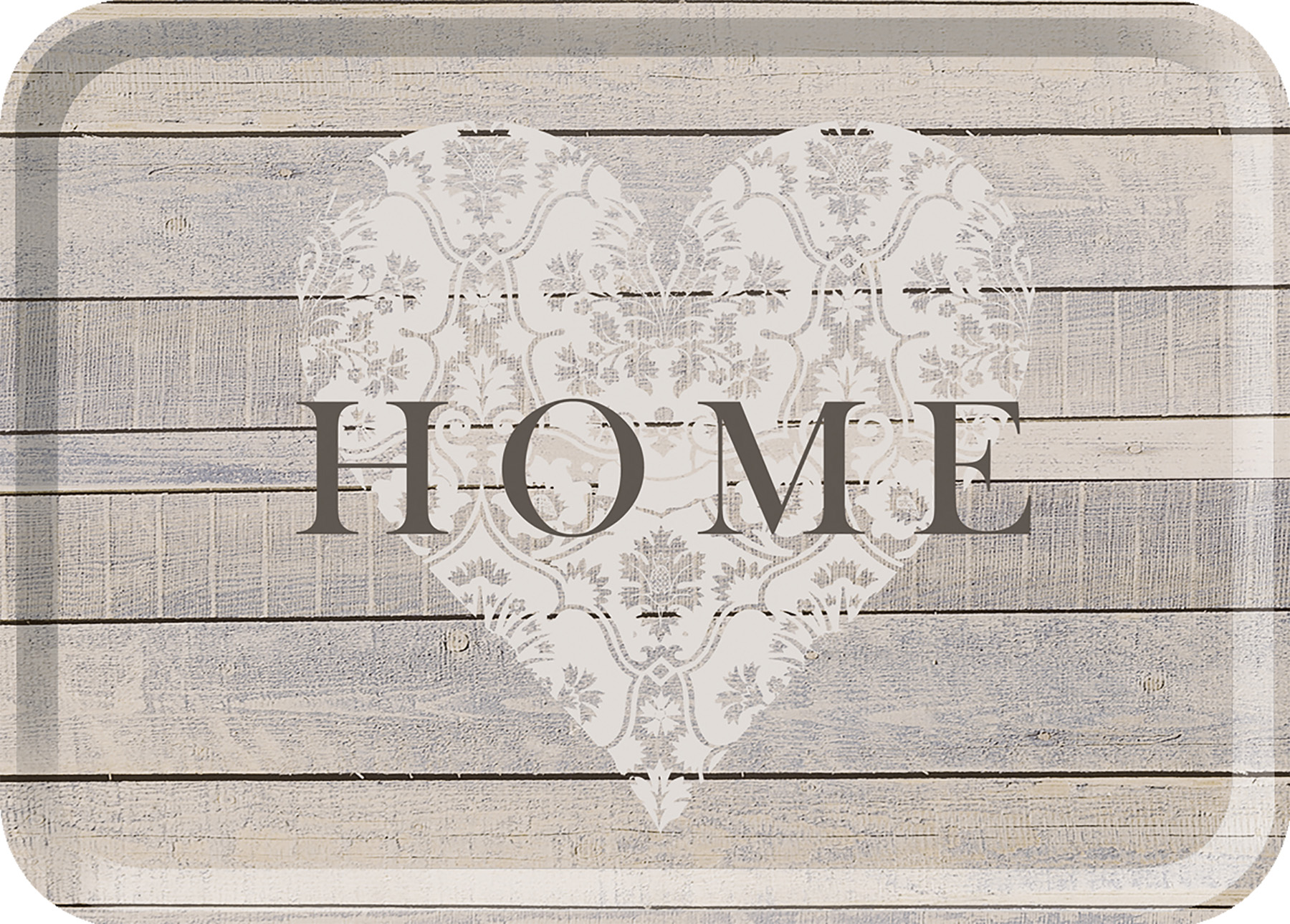 The perfect addition to any home, this delightful large serving tray is decorated with an elegant, rustic print of a lacy heart, laid against a wood-effect backdrop. The word ‘home’ also features in a bold, vintage-style font.