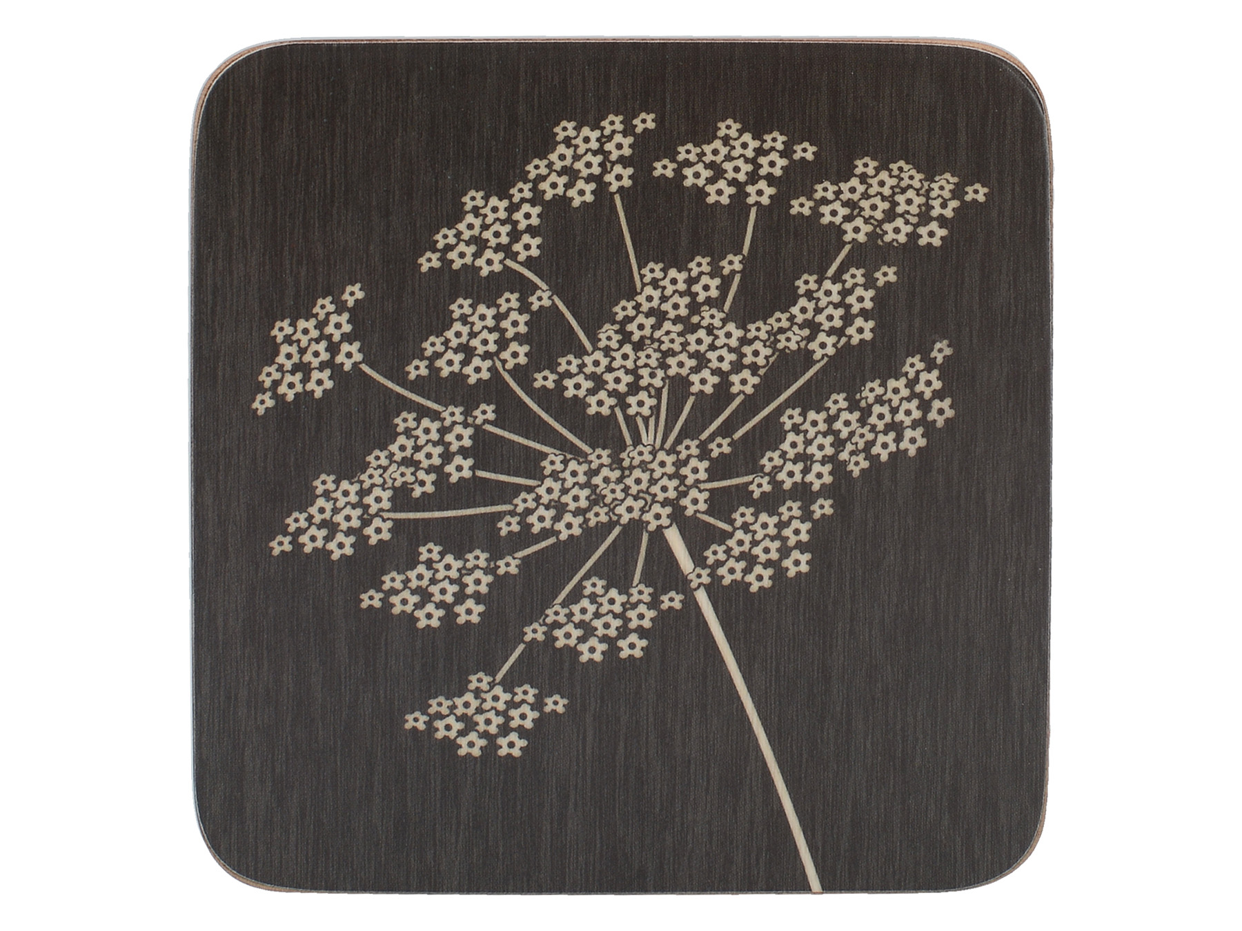 Protect your furniture with this fantastic set of six cork-backed coasters, decorated with a delicate dandelion design on a textured black canvas. These coasters are suitable for all occasions, whether for a big dinner party or simply for daily dining.
