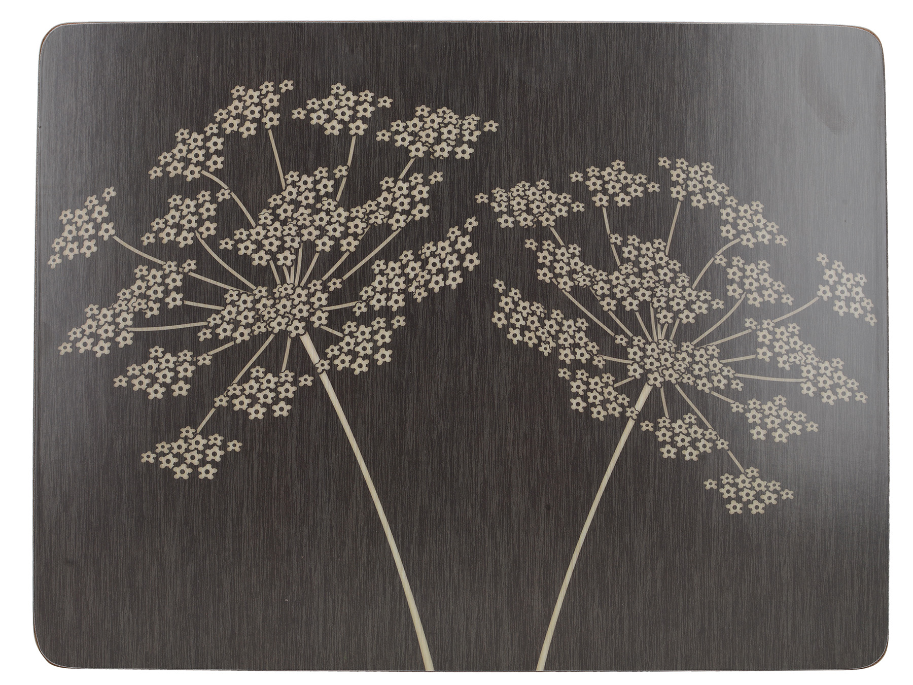 Protect your table with this fantastic set of six cork-backed placemats, decorated with a delicate dandelion design on a textured black canvas. These placemats are ideal for big dinner parties or Christmas lunch, or simply for everyday dining. The eleganc