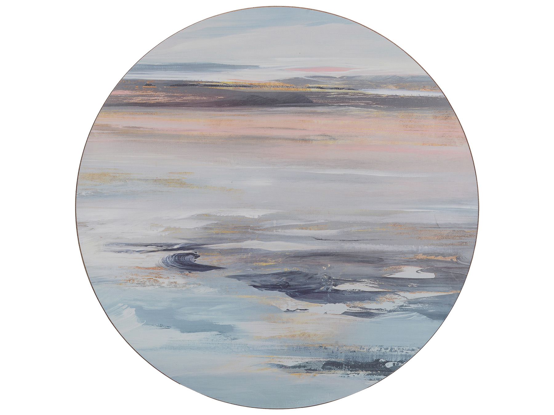 Dinner will quickly become the most peaceful time of the day with these round placemats on hand. The natural pink, blue and grey palette of the soothing ‘Tranquility’ placemat design echoes a peaceful summer sunset.
