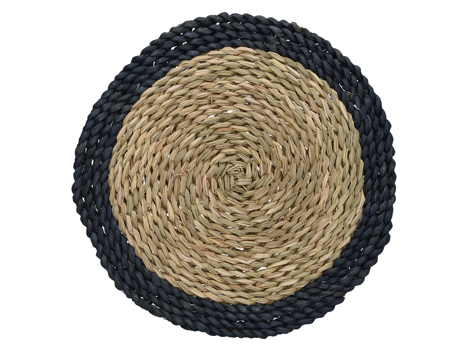 Bring eco?friendly style into your dining room with this set of placemats from the Naturals collection by Creative Tops. The woven, plaited design of these round navy and beige placemats brings a simple, inspired-by-nature look to surfaces.